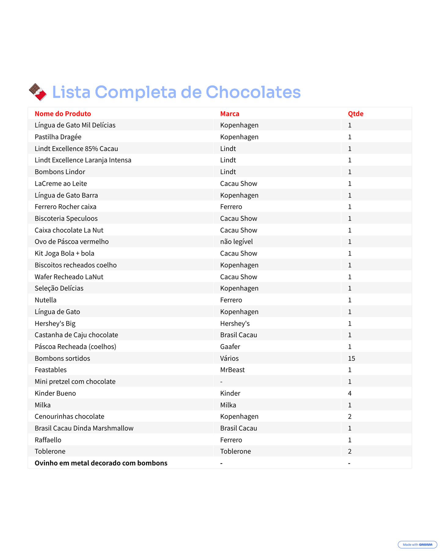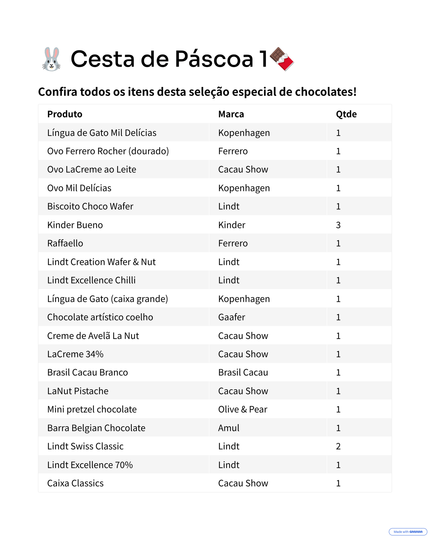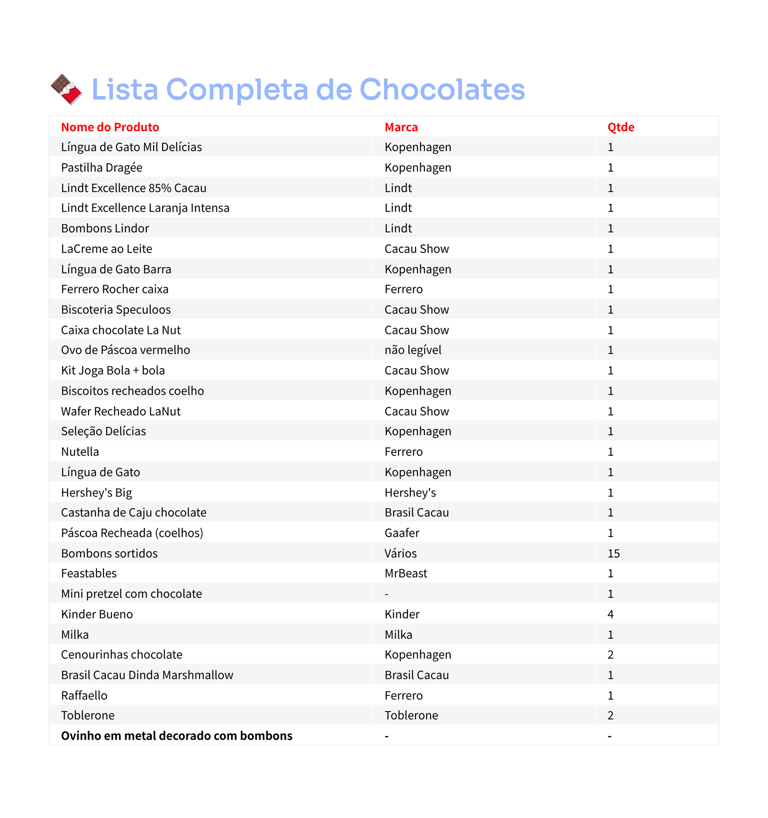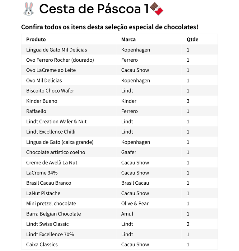 Contéudo da Cesta 1 - 42 Itens