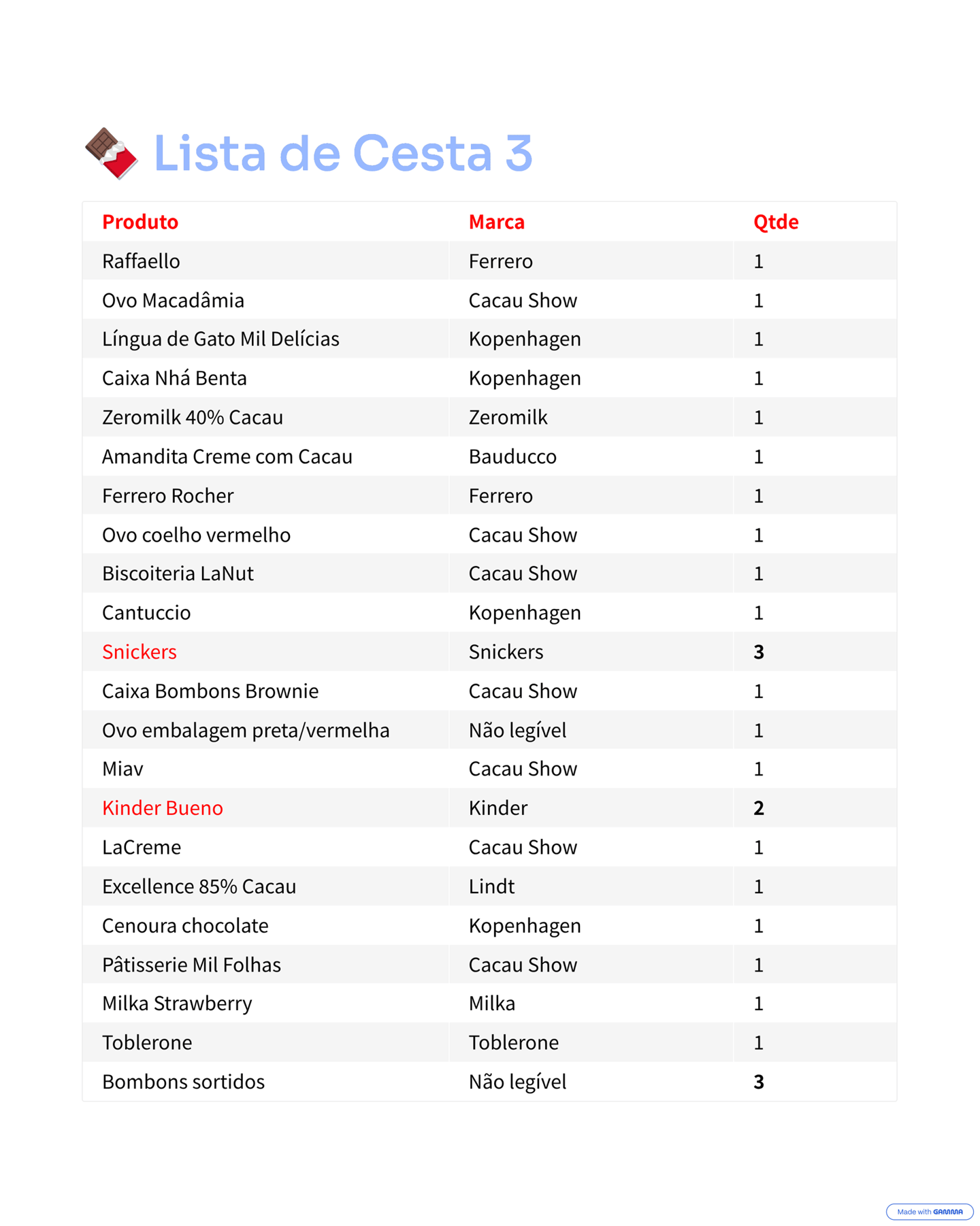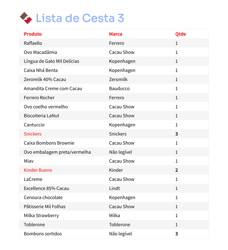 Contéudo da Cesta 3 - 30 Itens